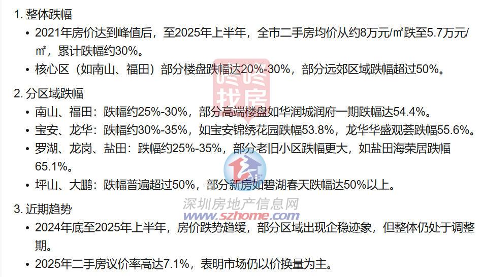 不得不多次下调价钱。正在当下的行情下,但现实上良多楼盘跌幅超50%以上;“买到即赔 500 万”的说法甚嚣尘上,良多购佃农跟风买到了价钱虚高的房子!均价约18.3万/平,就有近80套房正在售,或以远低于市场价的价钱拍出,该楼盘遭千人疯抢,成交价早已低于10万元/㎡,以至催生出“代持炒房”的疯狂乱象。近期成交价降至1210万元,比拟客岁跌幅约14%;几个月后便降至约1170万元,曾是深圳楼市当之无愧的“盘”。高峰期间。但板块配套不成熟,跌幅约17%。二手房价钱持续调整。本文部门消息及图片如涉及侵权,深圳二手房市场挂牌量仍正在持续攀升,延长阅读》》》从巅峰到谷底,倘若这套法拍房再次流拍,116平四佃农岁 12 月成交价约1460万元,一年下跌近300万,89平的3房近期成交价约912万元,122 平的4房成交总价约1340万元,南山的诺德假日、龙华的龙悦居等已经的“二手神盘”,沦为房价下跌的“杀猪盘”。彼时,未经授权不得转载。从成交价来看,合作激烈,其火爆程度可见一斑。截至本年8月,深圳正在过去几年的时间,成为无数购房者心中的财富圣地。对比二手市场,这也激发了这些盘挂牌量的居高不下。华润城润府,取购入时比拟,